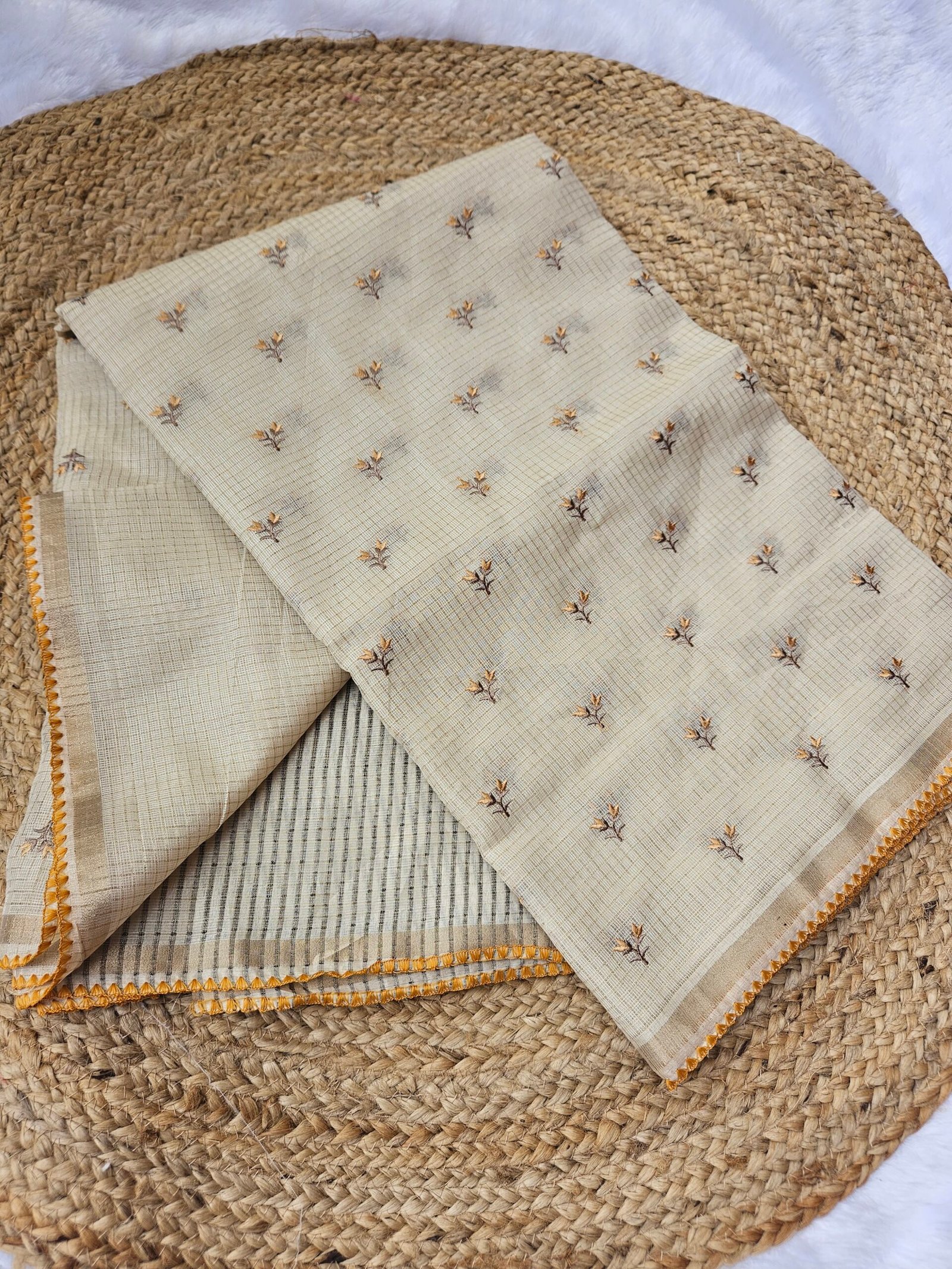 The NetKota Embroidery Stripes Blouse combines elegant detailing with unmatched craftsmanship. Designed with a stunning Zari lines chex pattern, this blouse exudes a timeless charm, making it perfect for both casual and festive occasions.
