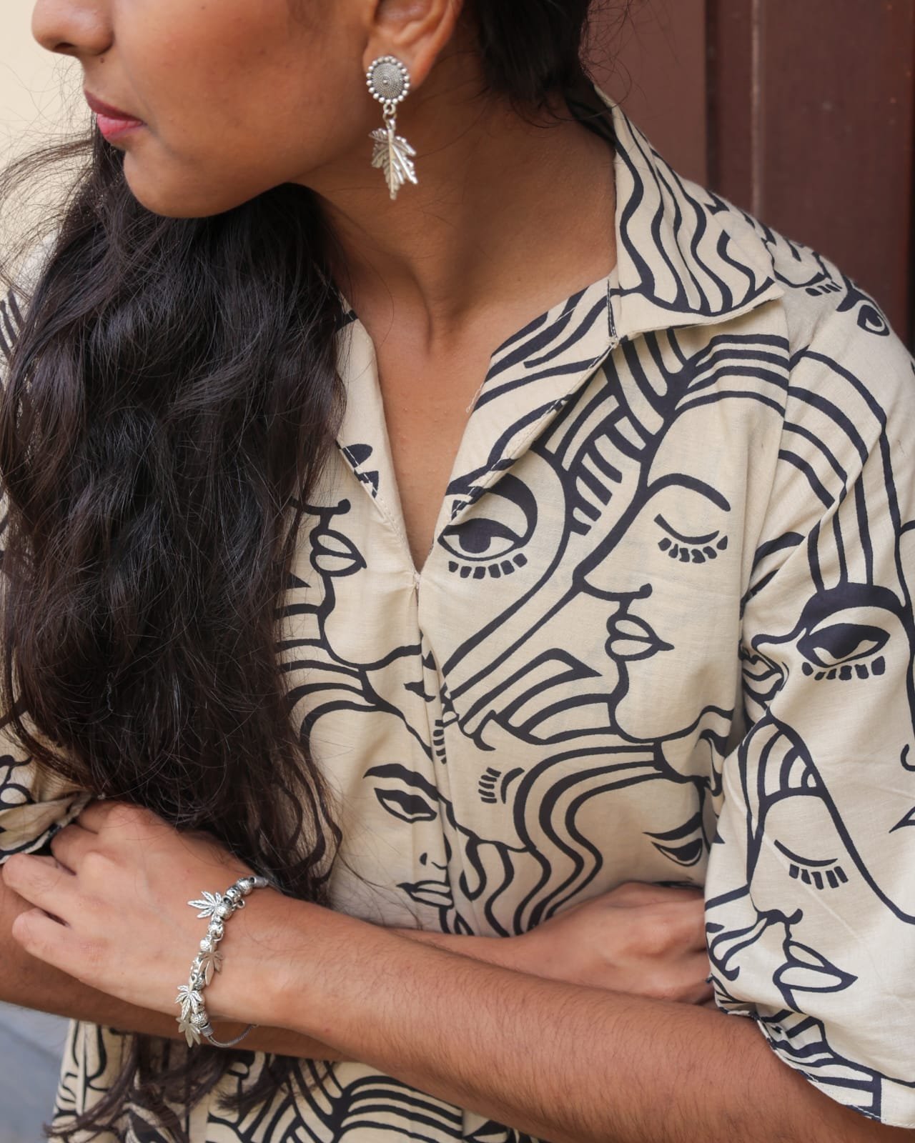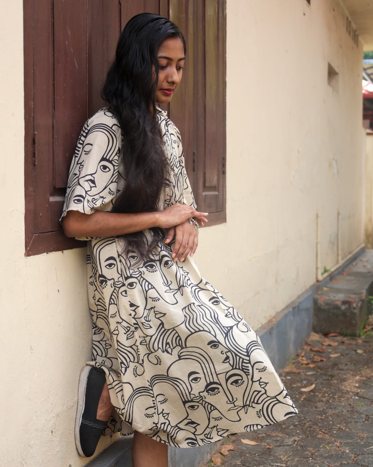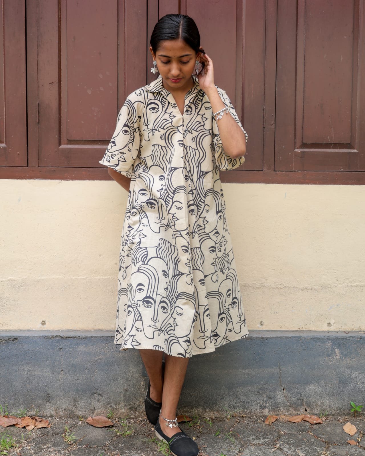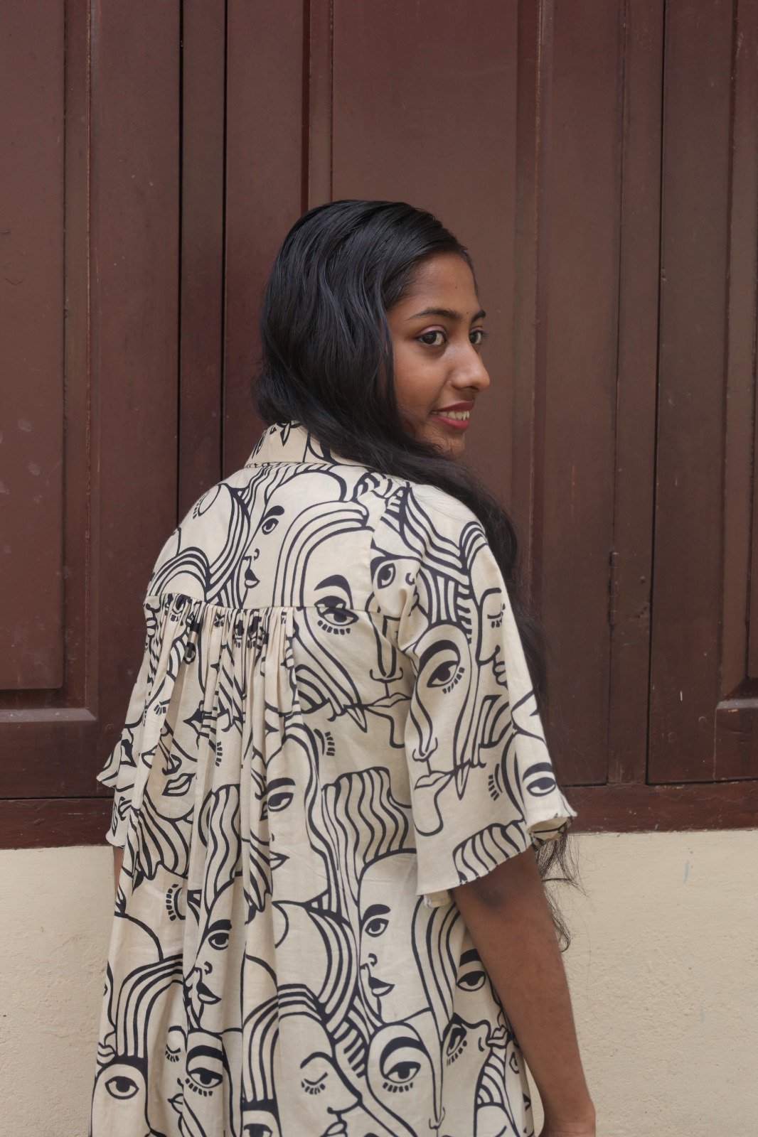 Pure cotton frock style top With shirt collar and Back pleated